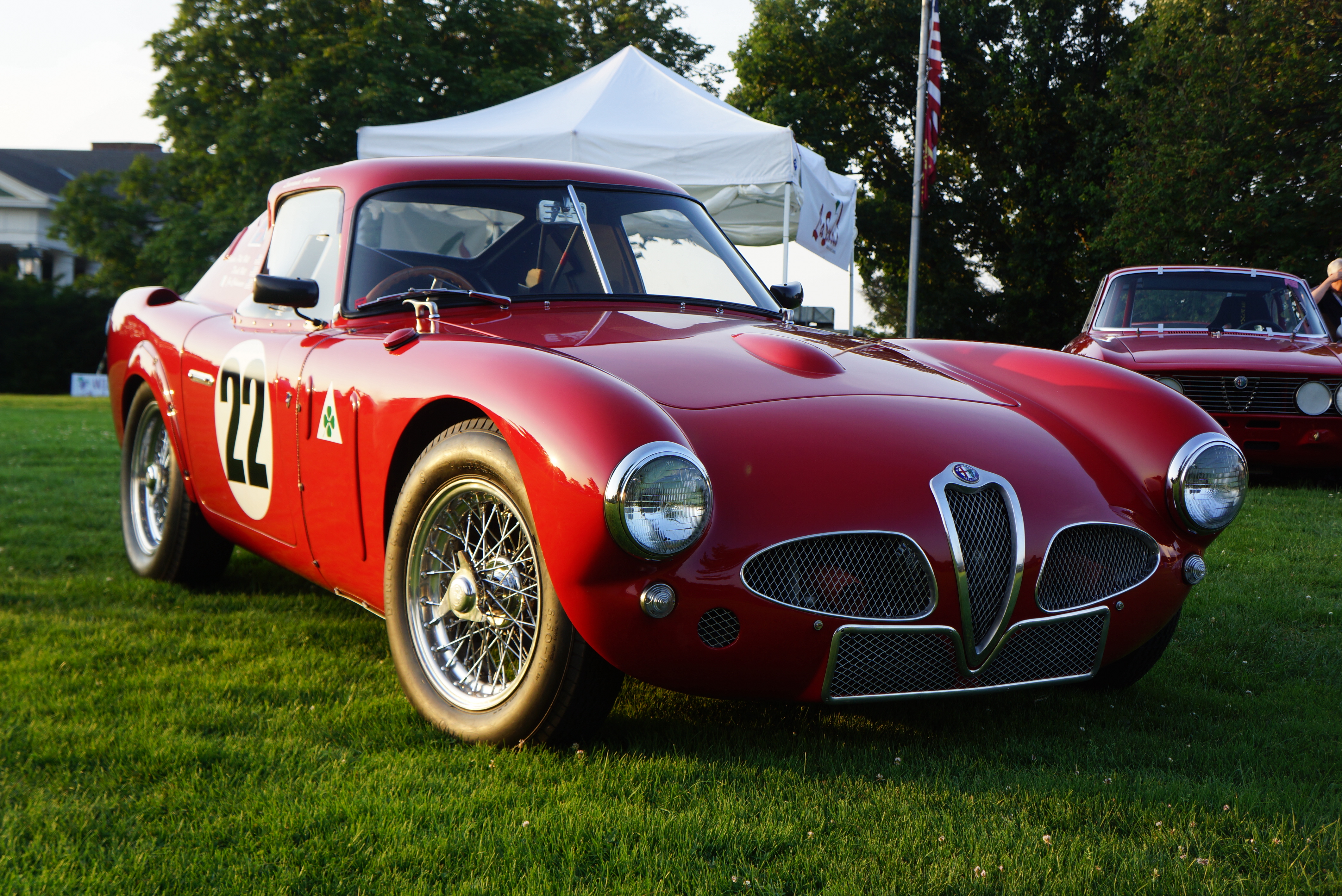 I can assure you that the rest of this post will be short on words and long on photos. On Friday evening there was an AROC club dinner at the Pittsburgh Golf Club, with dozens of striking Alfa Romeos looking resplendent on the lawn in the setting sunlight. Saturday was the all-makes show, with literally thousands of domestic, Italian, German, Swedish, and Japanese vehicles on display. Saturday night was the AROC banquet dinner. And on Sunday, club members were treated to a reserved spot along the track to watch some spirited vintage racing. (We also saw race cars driven in anger on Saturday.)