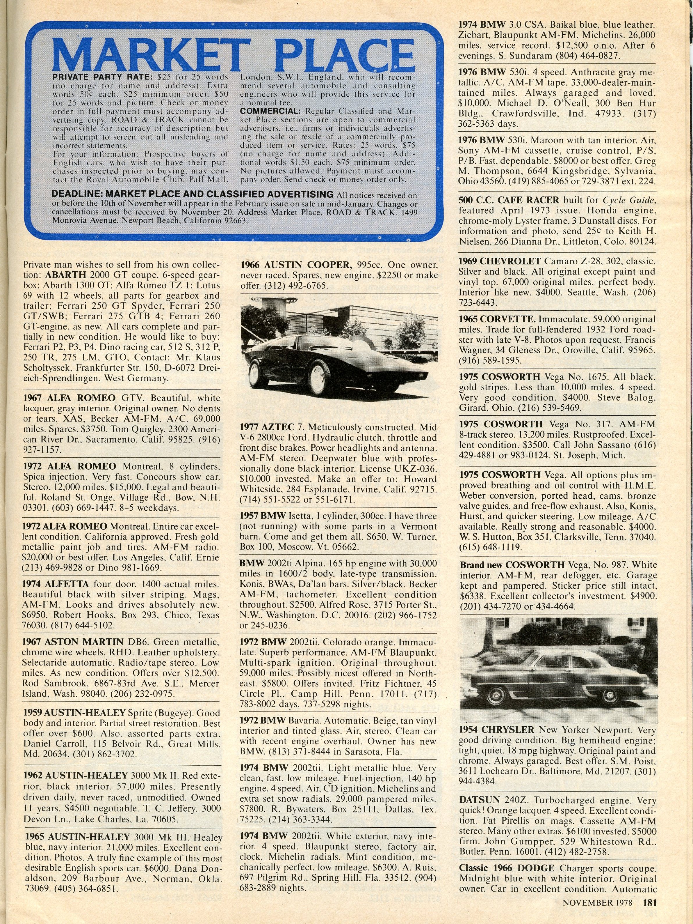 One day that month, the November issue of Road & Track magazine, to which I subscribed, arrived in the mail. I noticed an ad in MARKET PLACE, their classified ad section:
