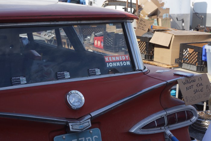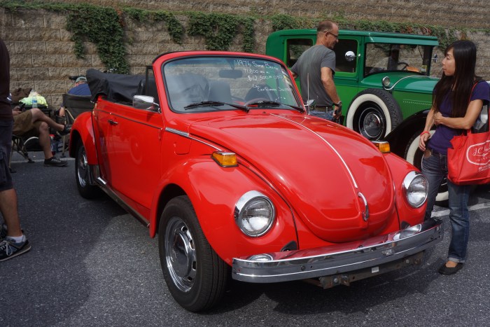 There was a Series 2 Jaguar XKE (E-Type) OTS (Open Two Seater, or roadster) in the car corral. It was in one of my fave Jag color combos: primrose yellow with a black leather interior. I stopped to admire it. It was a ‘driver’: lots of nice things about it, mainly that it appeared unmolested, but it was a #3 condition car (on a scale of 1-to-5), with wear-and-tear here and there. The shock was the asking price of $125k which was way high. This was on Wednesday. On Thursday, the car was still there, I stopped again, and the $125k had been crossed out; the ask was now $100k. I kept walking. On Friday, once again, the Jag and I met. Now the sign indicated a “Friday” price of $75k and THAT was crossed out, replaced with $70k! I didn’t photograph the car, but I memorized the price slide! The car was probably worth $60k-65k based on recent sales. If someone had been looking for such a car, patience might have rewarded them!