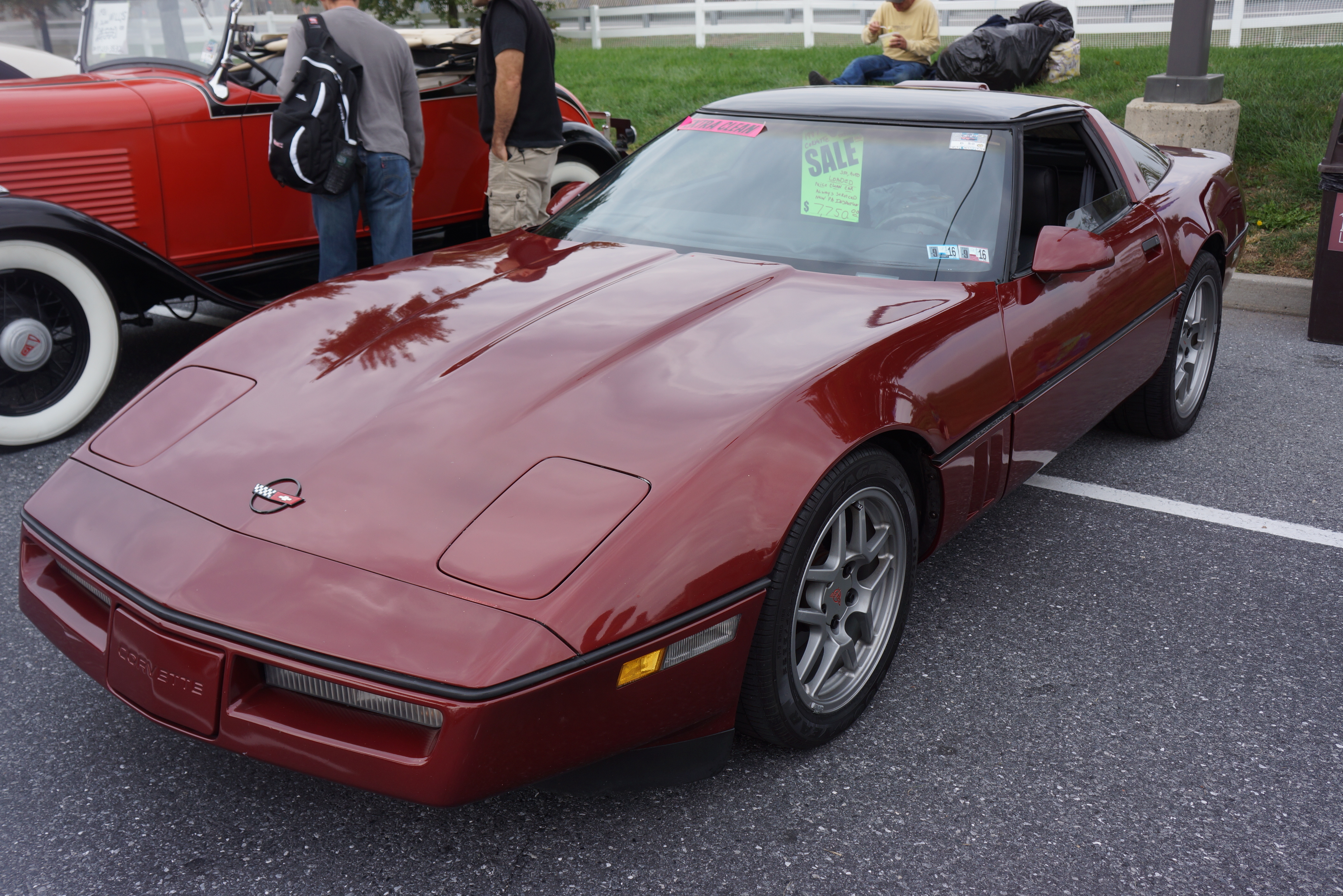 1991 Chevy Corvette coupe, dark red, 69k miles. Interior color and transmission not noted. Sign claims $5,000 recently spent on “upgrades”.