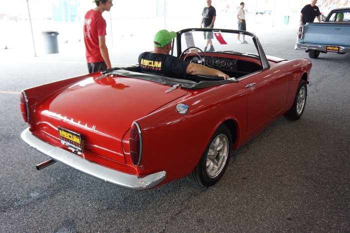 Lot #130, 1963 Sunbeam Alpine Series III convertible, red, red removable hardtop, black interior. Four-cylinder engine with 4-speed stick. Pre-sale estimate of $20-30,000