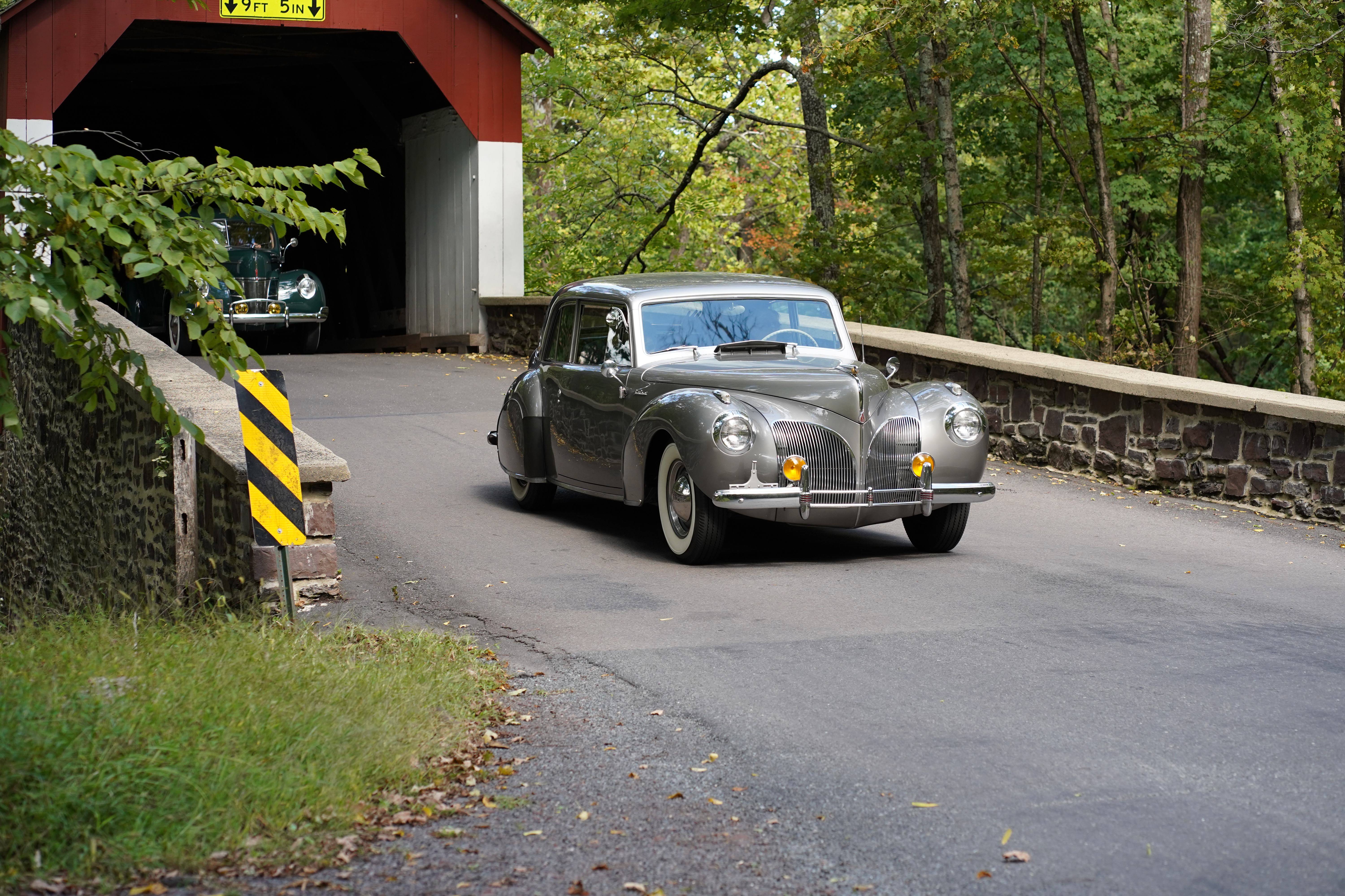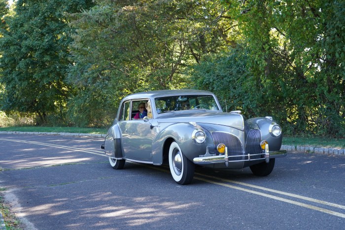 - 1941 Lincoln Continental: We were treated to TWO beautiful Mark I Continentals on this tour, and while Tour Chair Vince made it clear to me that he preferred the maroon one, I fell in love with this warm silver one. The female owner/driver caught me continuously taking pictures of it, and said to me “it’s not a show car, you know!” I told her it was just as beautiful as any show car. In a self-deprecating way, she complained that her car was photographed at an event and ended up on the cover of the Lincoln Owner’s Club magazine, which to her “was just a shame as there were so many other nicer cars there!” Her car ran as well as it looked. This was my overall favorite car on the Tour.