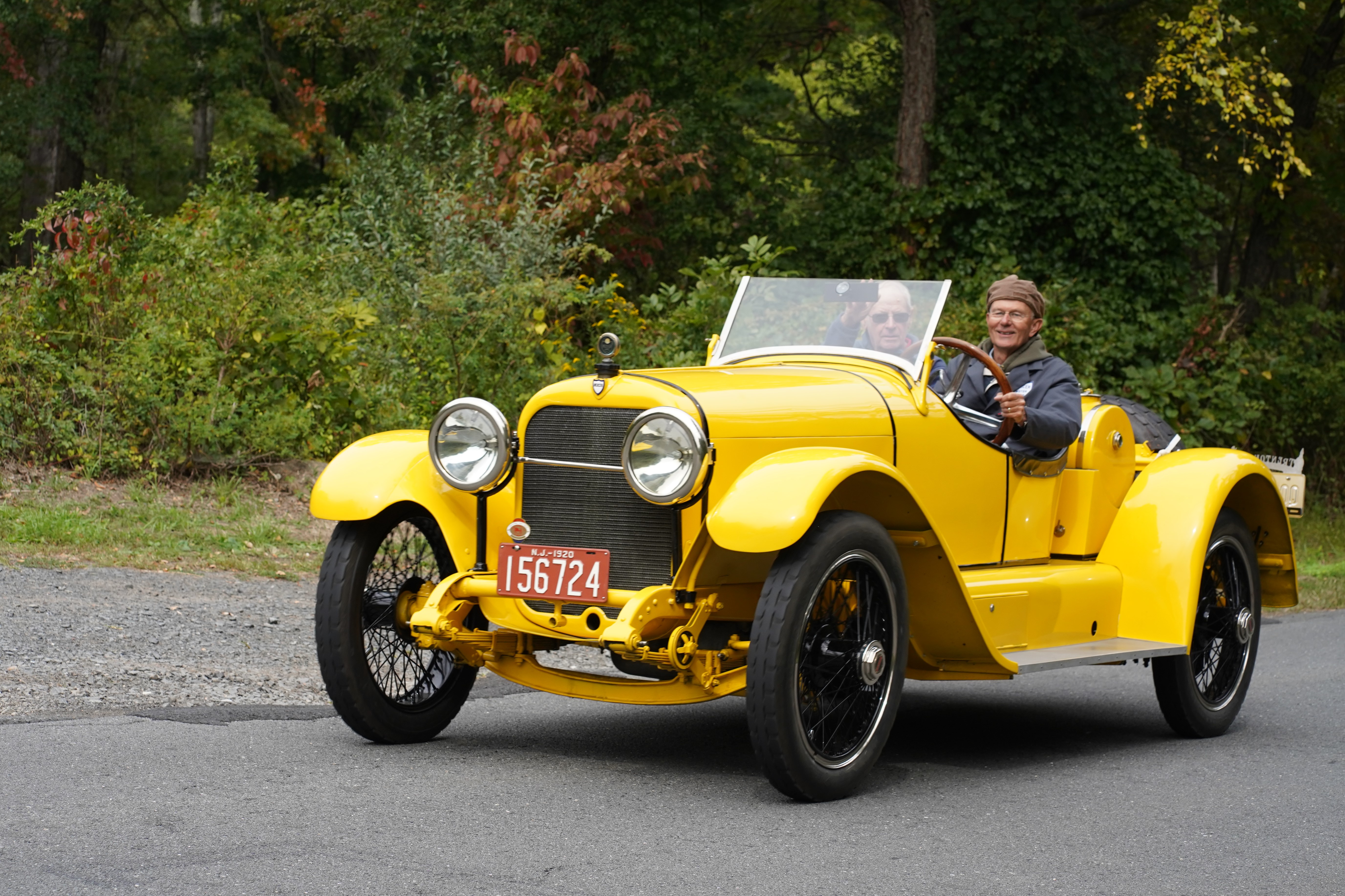 - 1920 Mercer Raceabout: If the searing yellow paint didn’t catch your attention, then the barely-muffled exhaust would! The Mercer’s driver was having no problem keeping up with traffic, and the wide grin on his face verified that he was having as much of a blast as you’d expect. I caught up with him at one stop to ask about the cubic inch displacement of the Mercer’s 4-cylinder engine. He said that it’s “about 300 c.i.” which helps explain his ability to run with the 8- and 12-cylinder jobs. I found myself photographing his car repeatedly during the week.