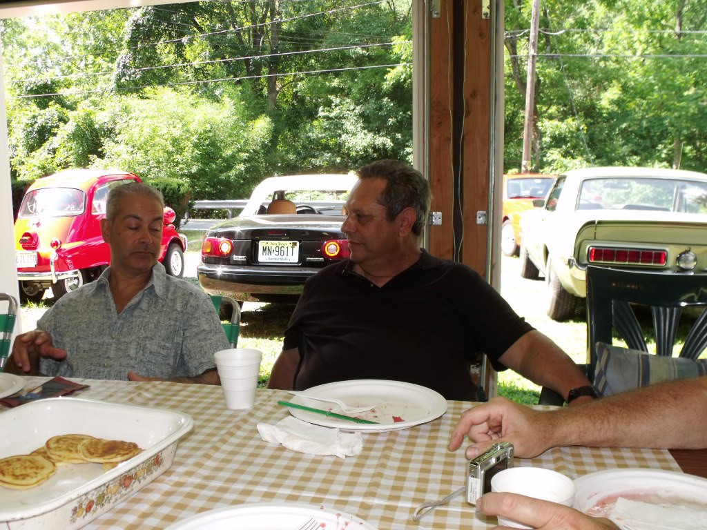 As a changeup from the typical Sunday morning breakfast drive, I emptied my garage of cars, set up a table and chairs, brought out the electric griddle and coffee pot from the kitchen, and invited a bunch of the regulars down to breakfast. (My wife said it looked like I could move in there; perhaps that was a hint….) Even Irv Gordon made it (after receiving the invite, he called me up and asked “Rich, do you think the guys would mind if I drove the C70 instead of the 1800? I want to ride in air conditioning”.)
