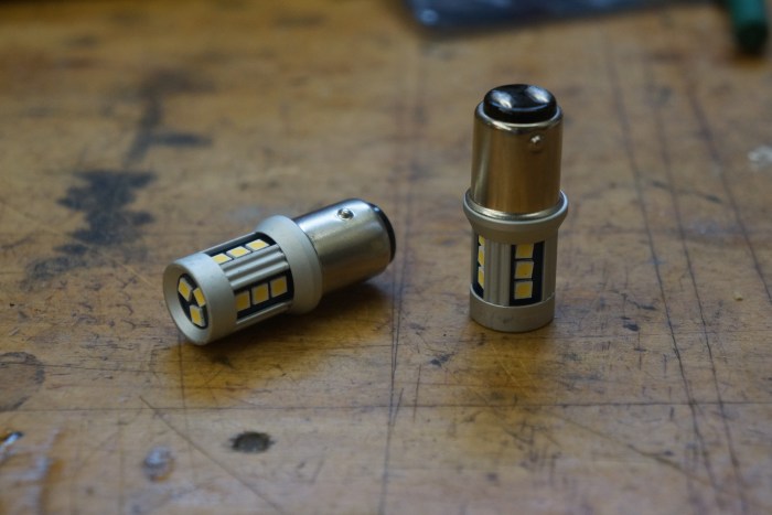 (For those who want to make the same upgrades, I would suggest trying both red AND white LED bulbs in the tail lamp assembly – provided that the tail lamp lens is red. Vehicles with WHITE lenses for tail/brake lamps MUST use a red bulb.)