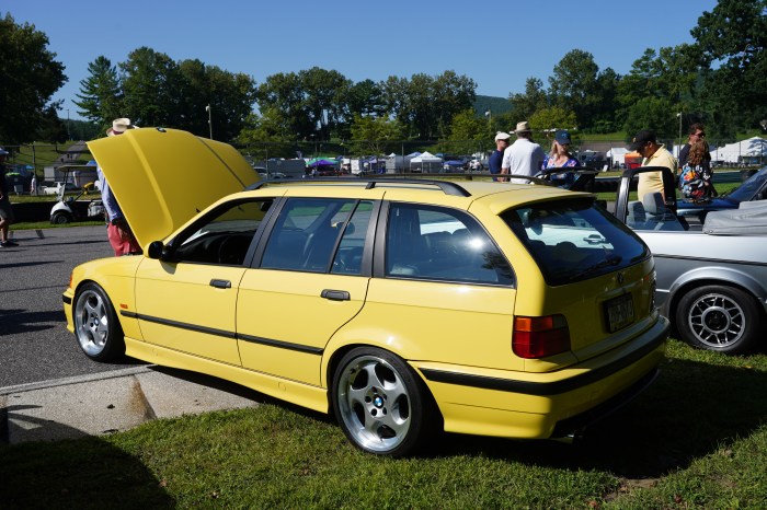 We arrived at the track at exactly 10 a.m., grabbed some coffee, and proceeded to the show cars. As always, there were special classes designated by the show organizers, as well as the popular “Gathering of the Marques,” populated by local clubs as well as individuals who wanted to show off their rides without preregistering for any particular class. This year, classes included the 50th Anniversary of the BMW 3-Series, One-owner Cars, “Body Doubles” (essentially replicars), Porsche 356s, Spirit of the Roadster, Designs of Giorgetto Giugiaro, Hemi Evolution, and Classic Ferrari V12 Coupes. In other words, something for (almost) everyone.