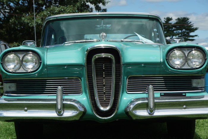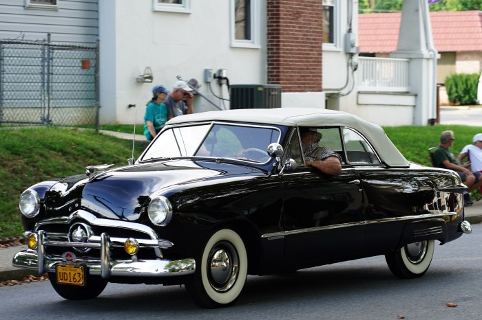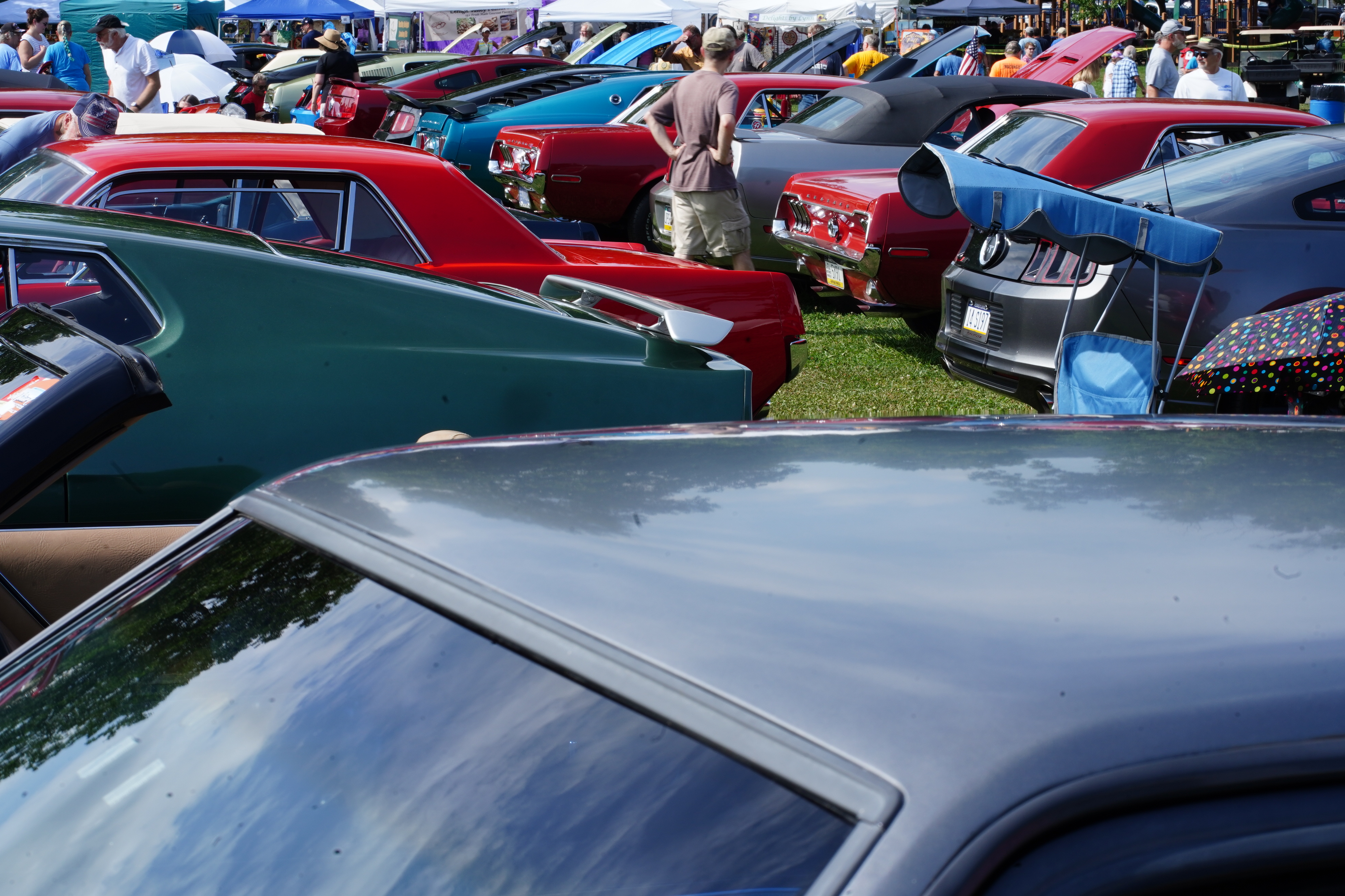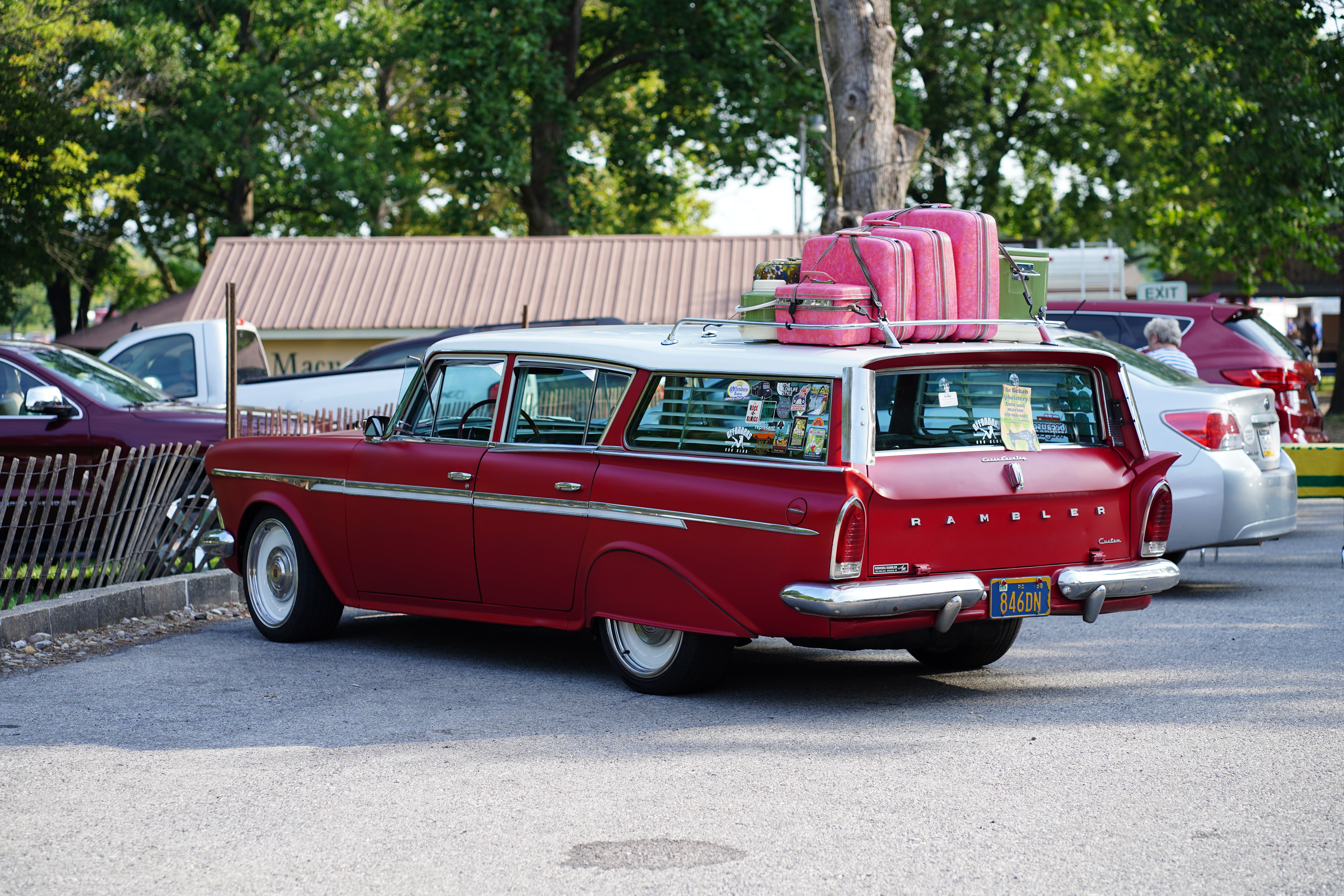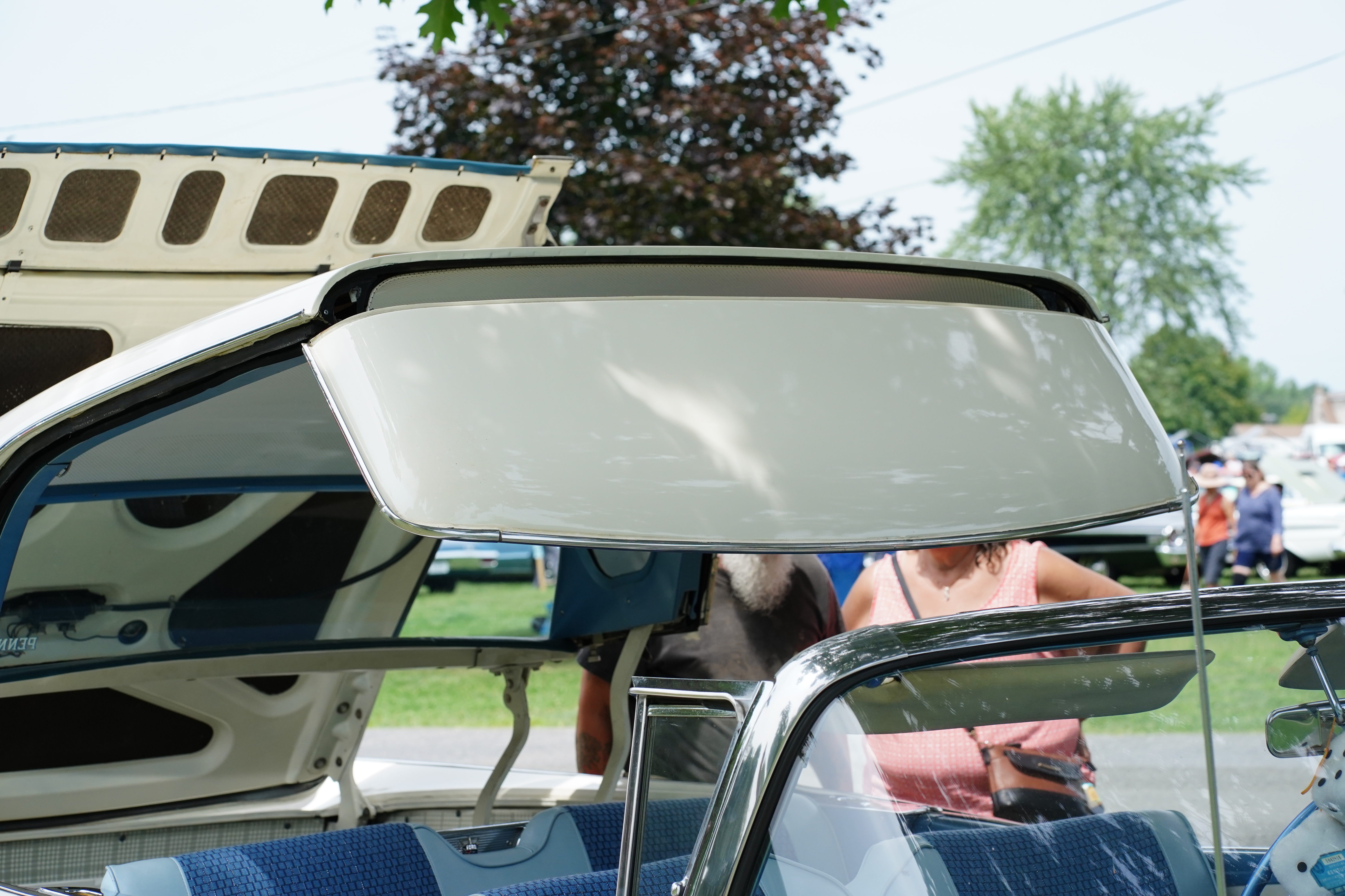 At many car shows, the majority of vehicles on display are the thoroughbreds: the sporty convertibles, muscle cars, luxury barges, and high-end machinery of their time. At Macungie, of course, there were plenty of Mustangs, Corvettes, Thunderbirds, Rivieras, Imperials, and the like. What struck me this year was the preponderance of four-door cars, cars that were more likely to be spotted in the driveways and parking lots of post-World-War-Two America. It was more exciting, frankly, to stumble upon a 1960 Chrysler New Yorker sedan, something I rarely see at a show, than it was a Chevy Camaro. (And no offense to you Camaro lovers out there, but it was the featured car of the weekend, with Camaros of every generation on display.)