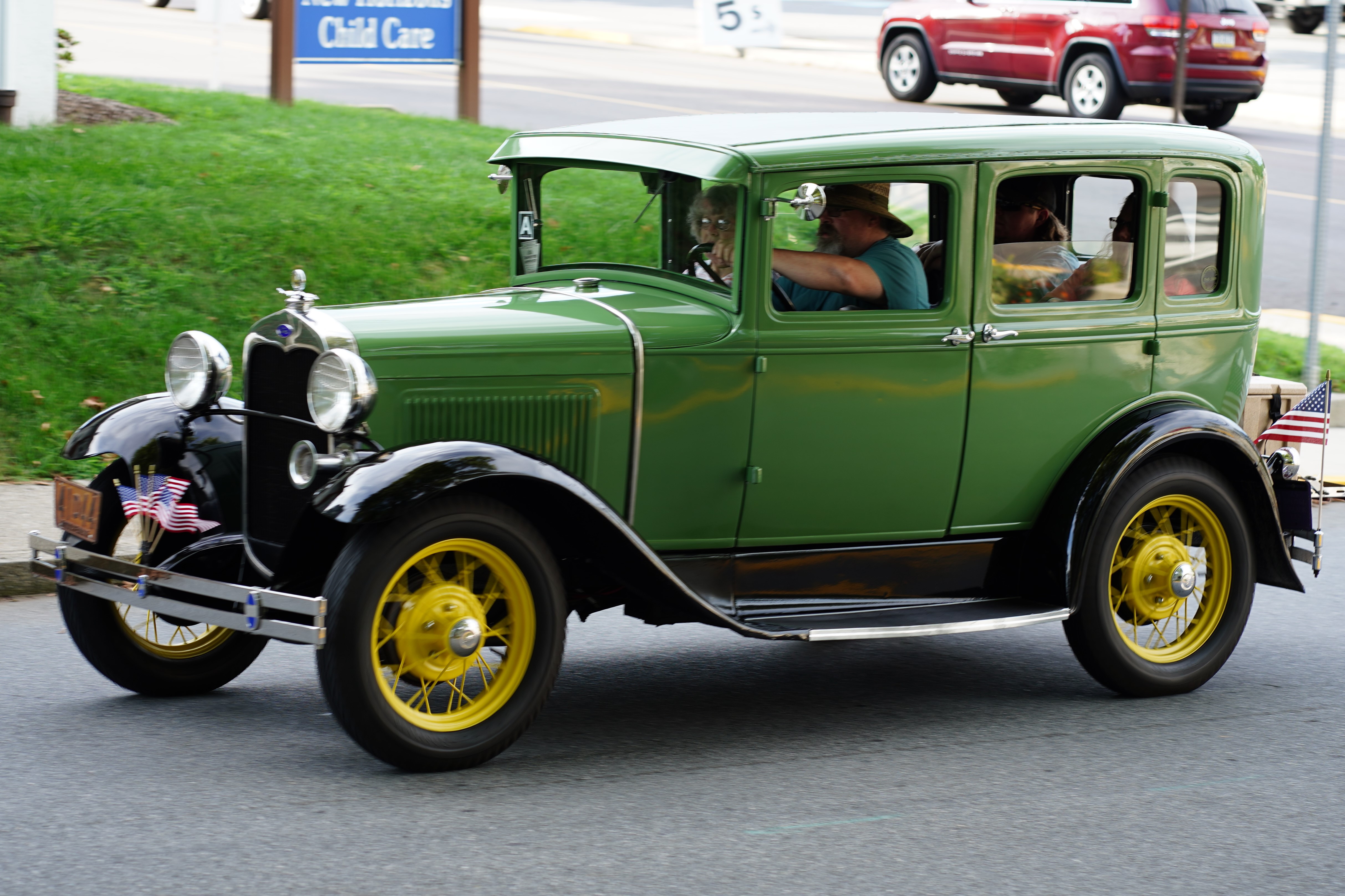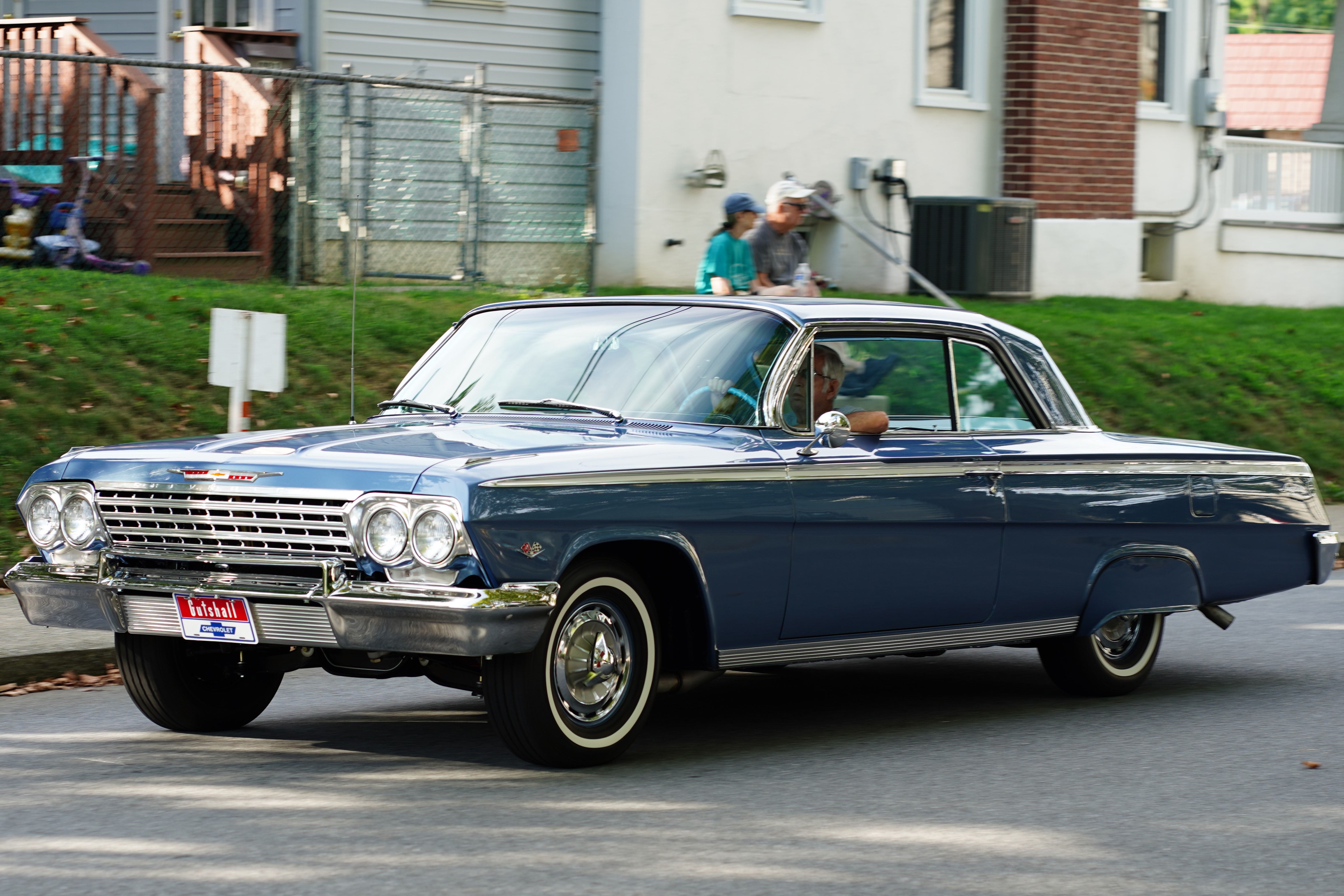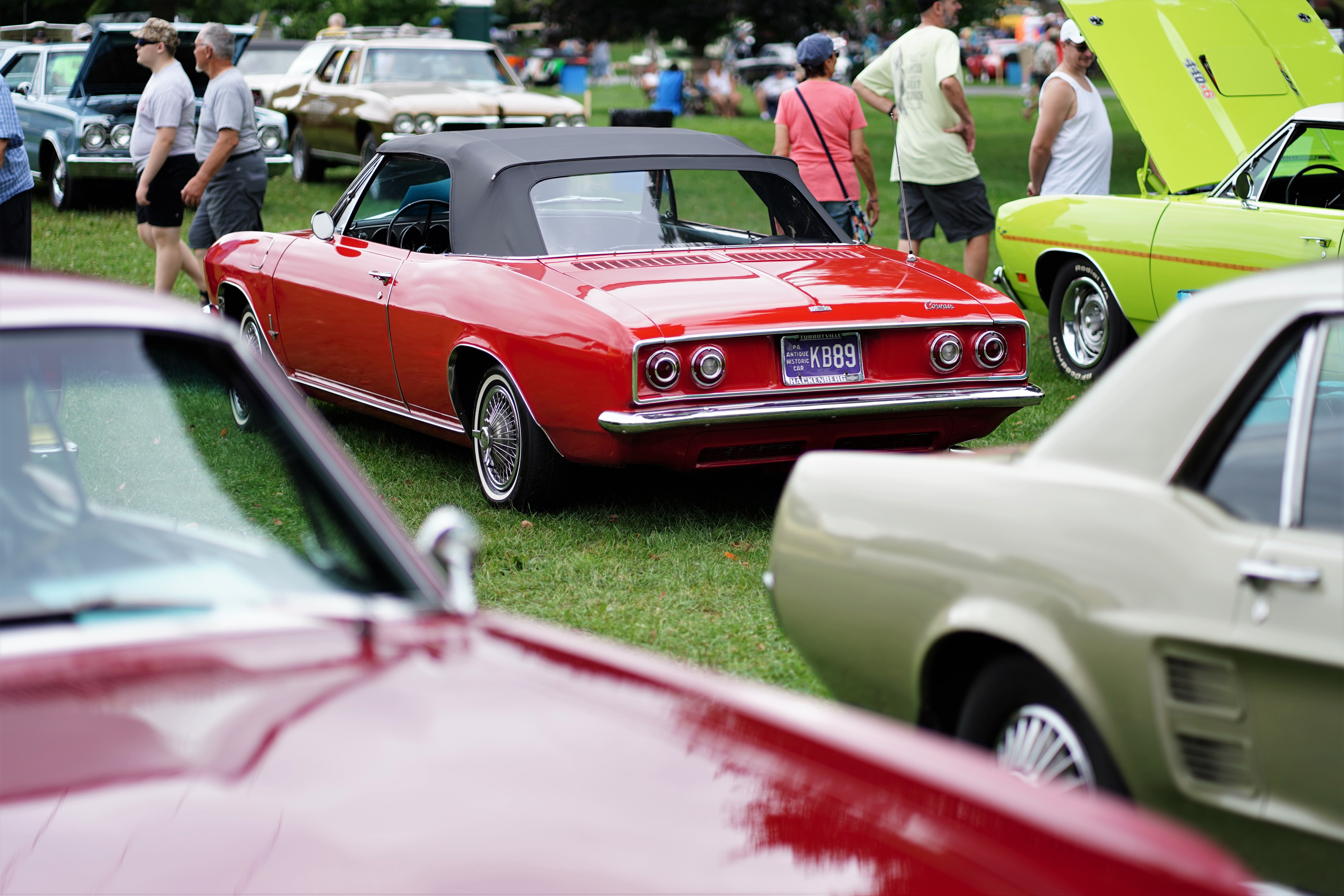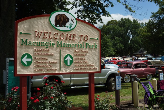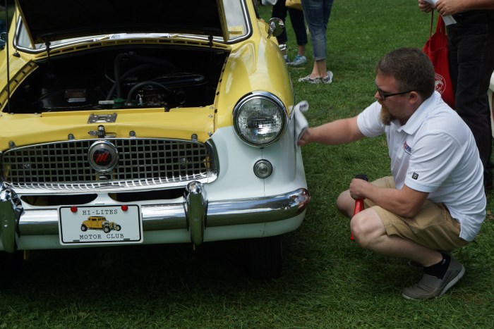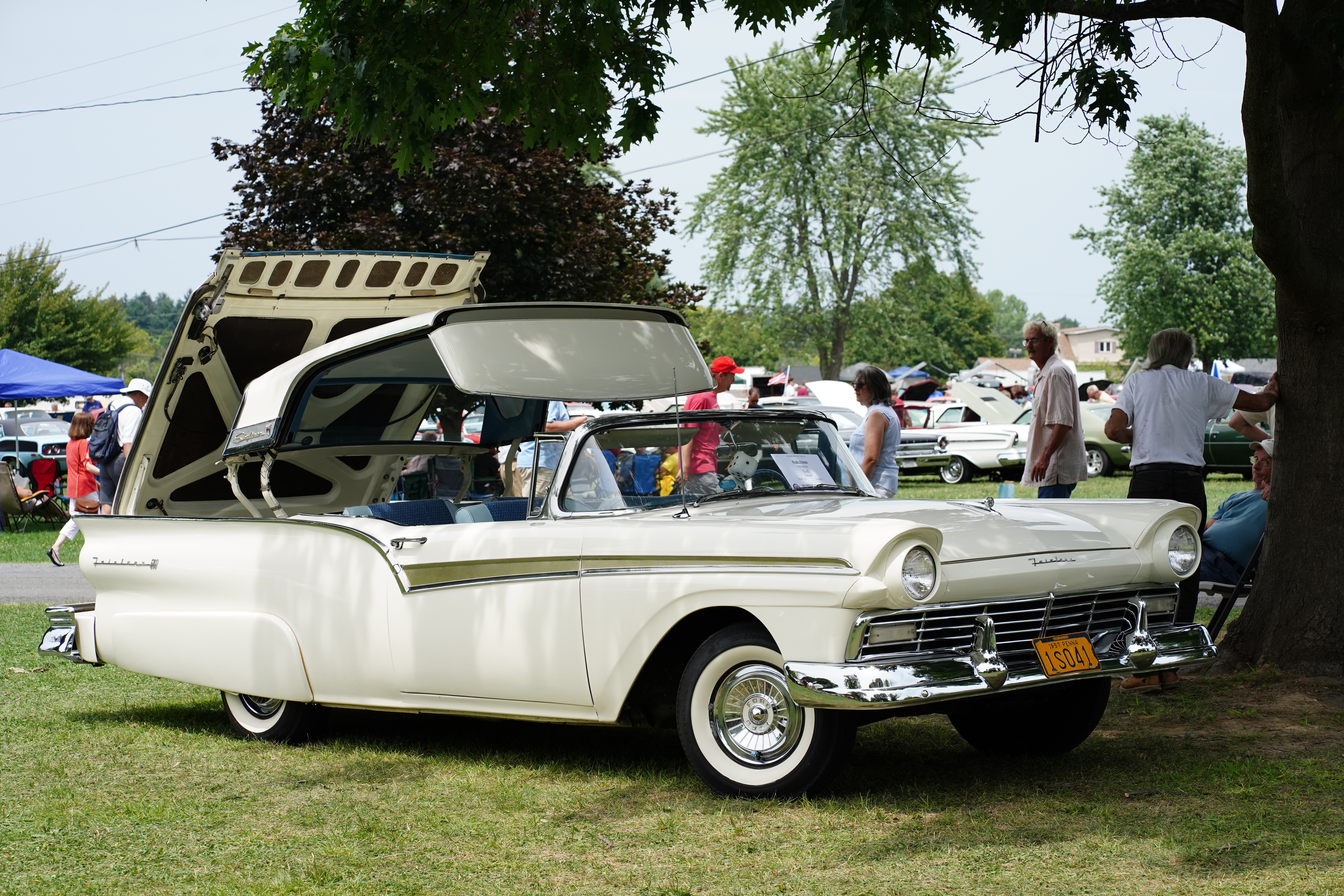 At many car shows, the majority of vehicles on display are the thoroughbreds: the sporty convertibles, muscle cars, luxury barges, and high-end machinery of their time. At Macungie, of course, there were plenty of Mustangs, Corvettes, Thunderbirds, Rivieras, Imperials, and the like. What struck me this year was the preponderance of four-door cars, cars that were more likely to be spotted in the driveways and parking lots of post-World-War-Two America. It was more exciting, frankly, to stumble upon a 1960 Chrysler New Yorker sedan, something I rarely see at a show, than it was a Chevy Camaro. (And no offense to you Camaro lovers out there, but it was the featured car of the weekend, with Camaros of every generation on display.)