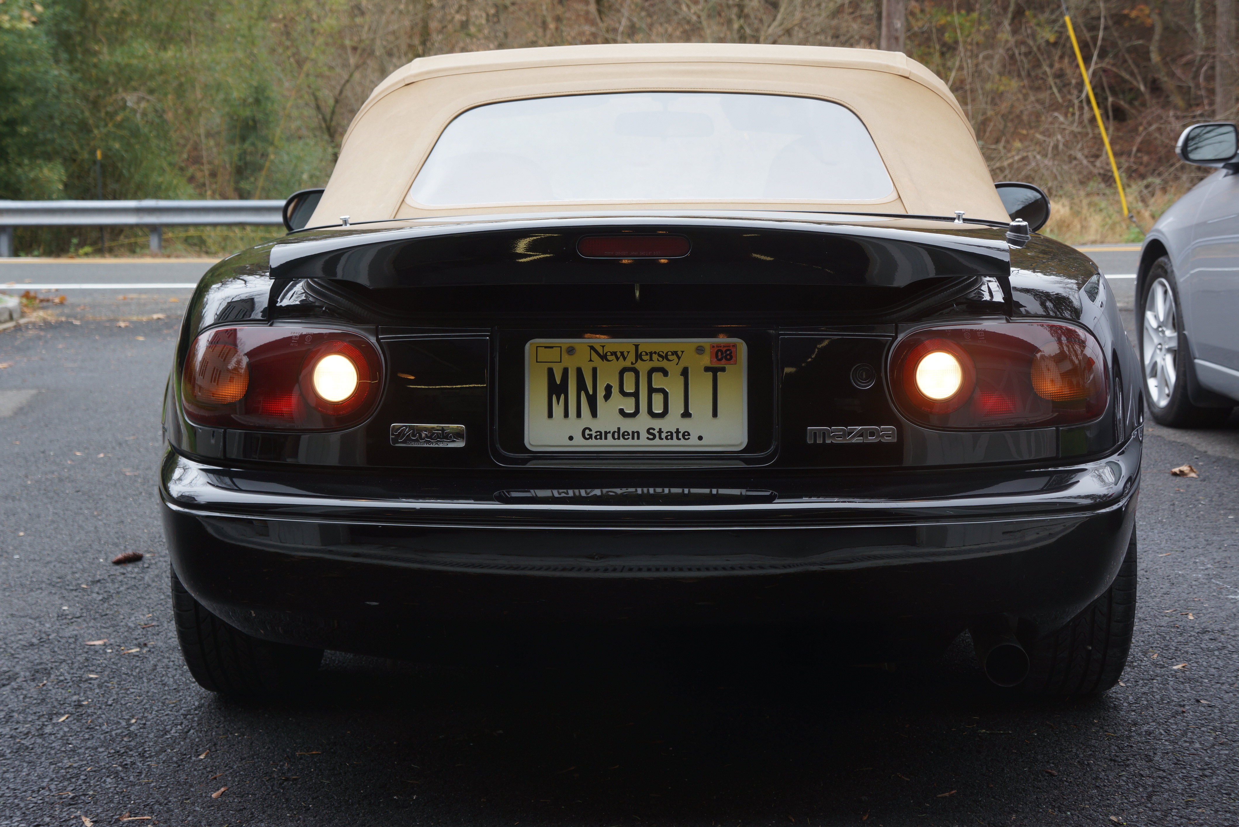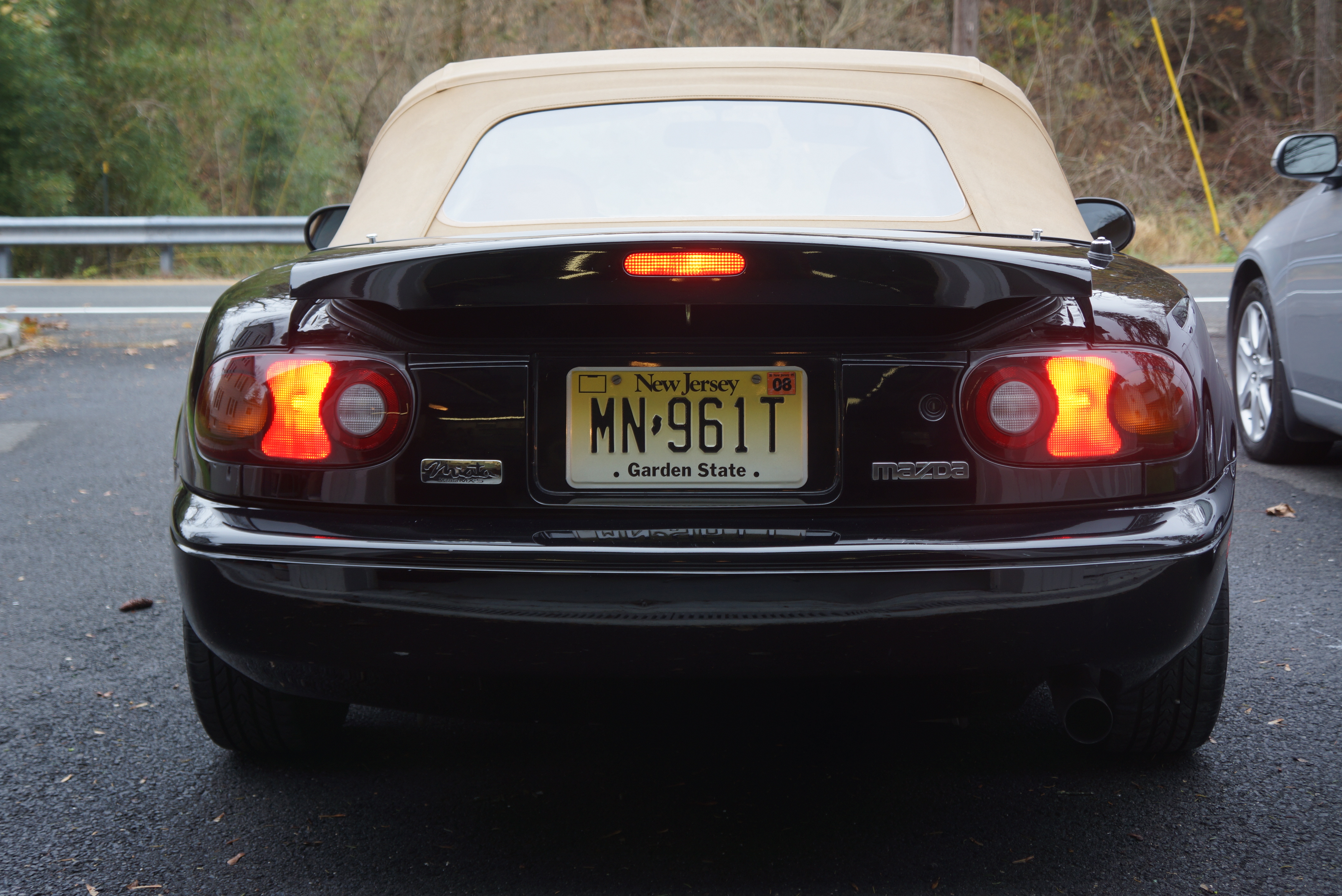 Above: my black ’93, with frontal jewelry, showing its face at a Miata club event for the first time