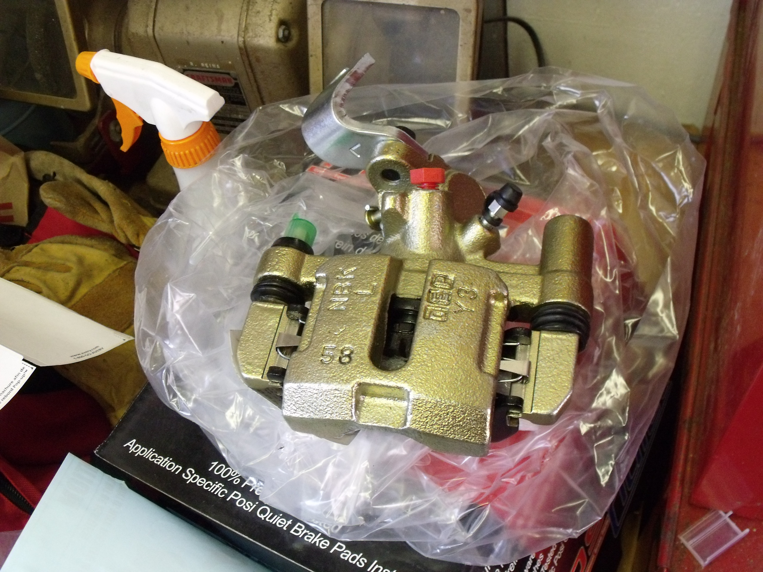 Old caliper looks crusty; can’t see it, but piston is stuck