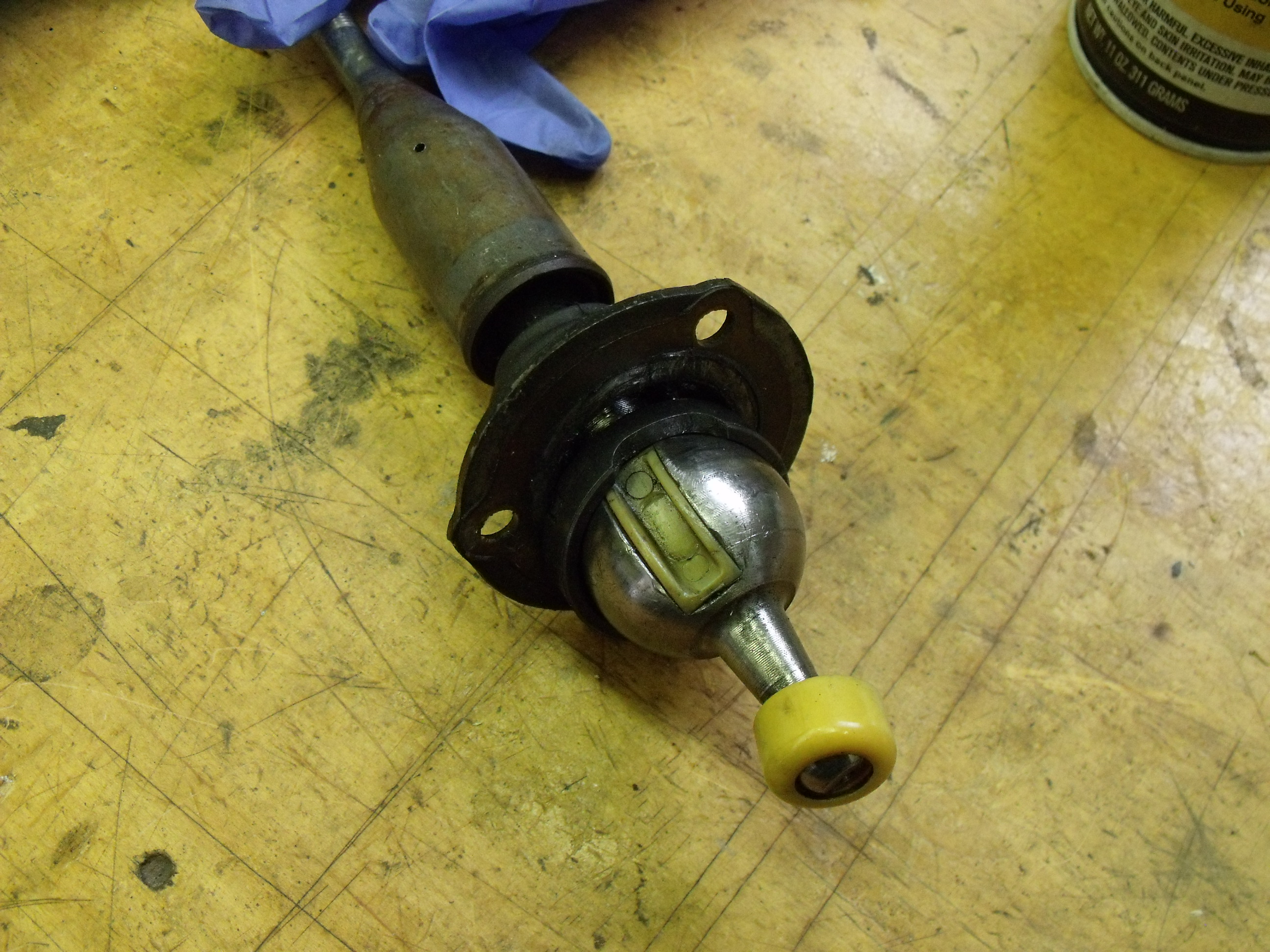 Bottom of shift rod, with old plastic bushings still attached