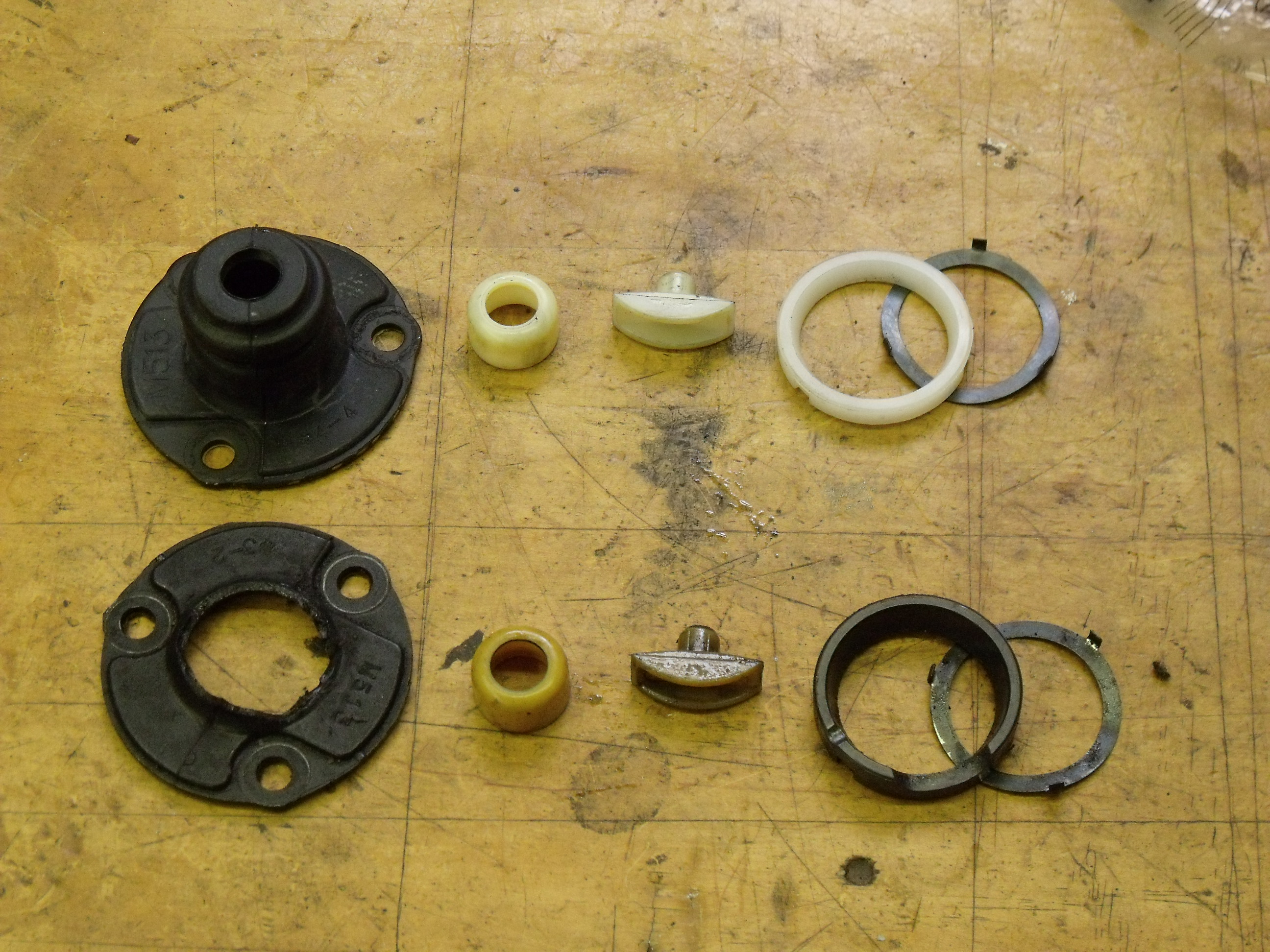 Old (bottom) and new (top) service parts lined up