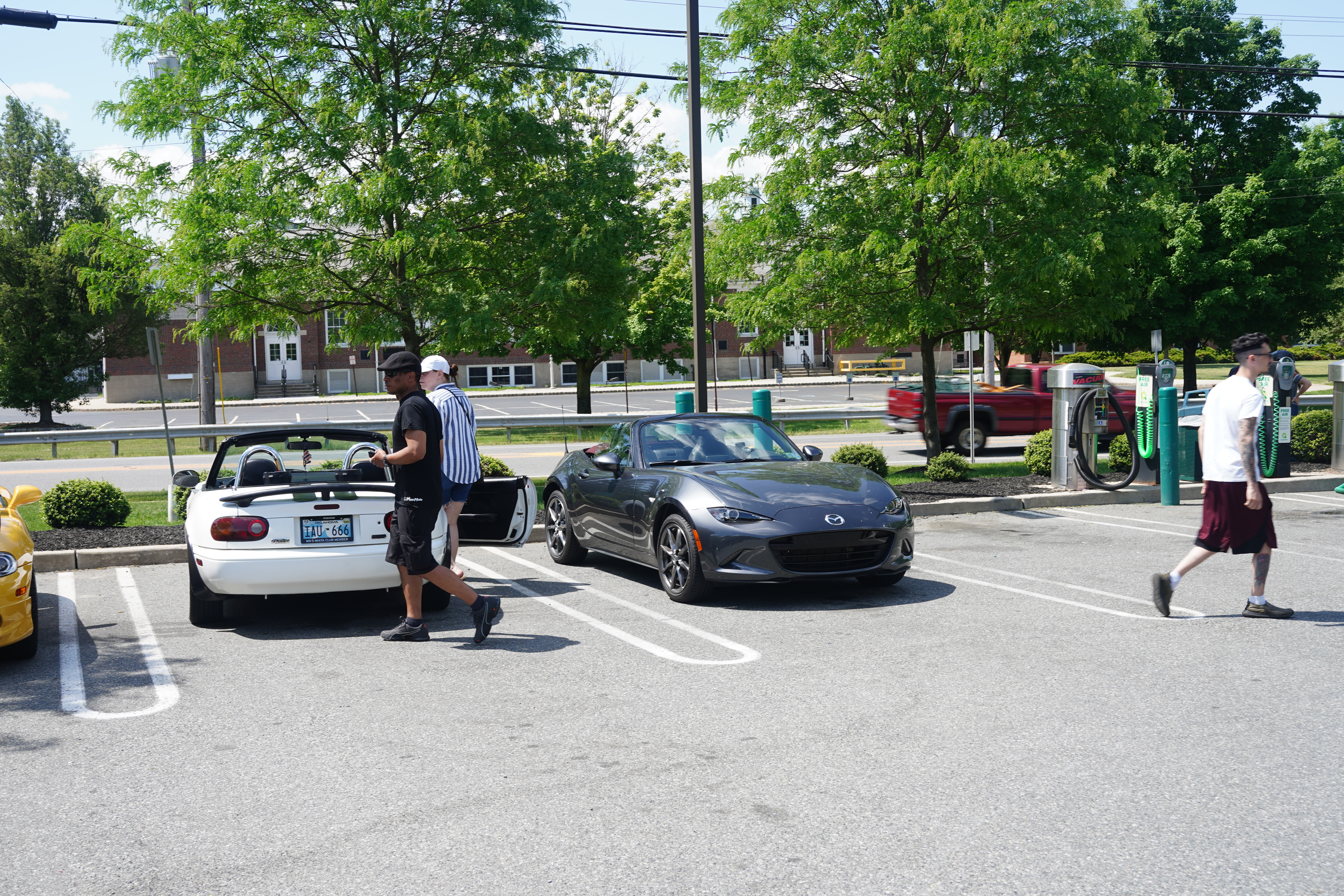 It was great fun to have a string of Miatas as far as I could see in front of me, and almost as many to my rear. I mentioned earlier that there were cars of all generations. I’ll briefly explain that Mazda has so far built four generations, what insiders refer to as NA, NB, NC, and ND (this based on VIN code). My car, an NA, is of the generation built from model year 1990 to 1997. The NB cars look almost identical to the NA ones; the big giveaway are the exposed headlights on the NB (only the NA had retractable headlights). The NC cars have pronounced fender flares, and sit a bit higher compared to previous cars. There was a retractable hardtop option on the NC. The ND styling is probably the biggest departure of the four generations, but it also brought the car back very close in size and weight to the 1990 version. The ND is also available as an RF (Retractable Fastback) which opens the top but leaves the structure around the rear window in place.