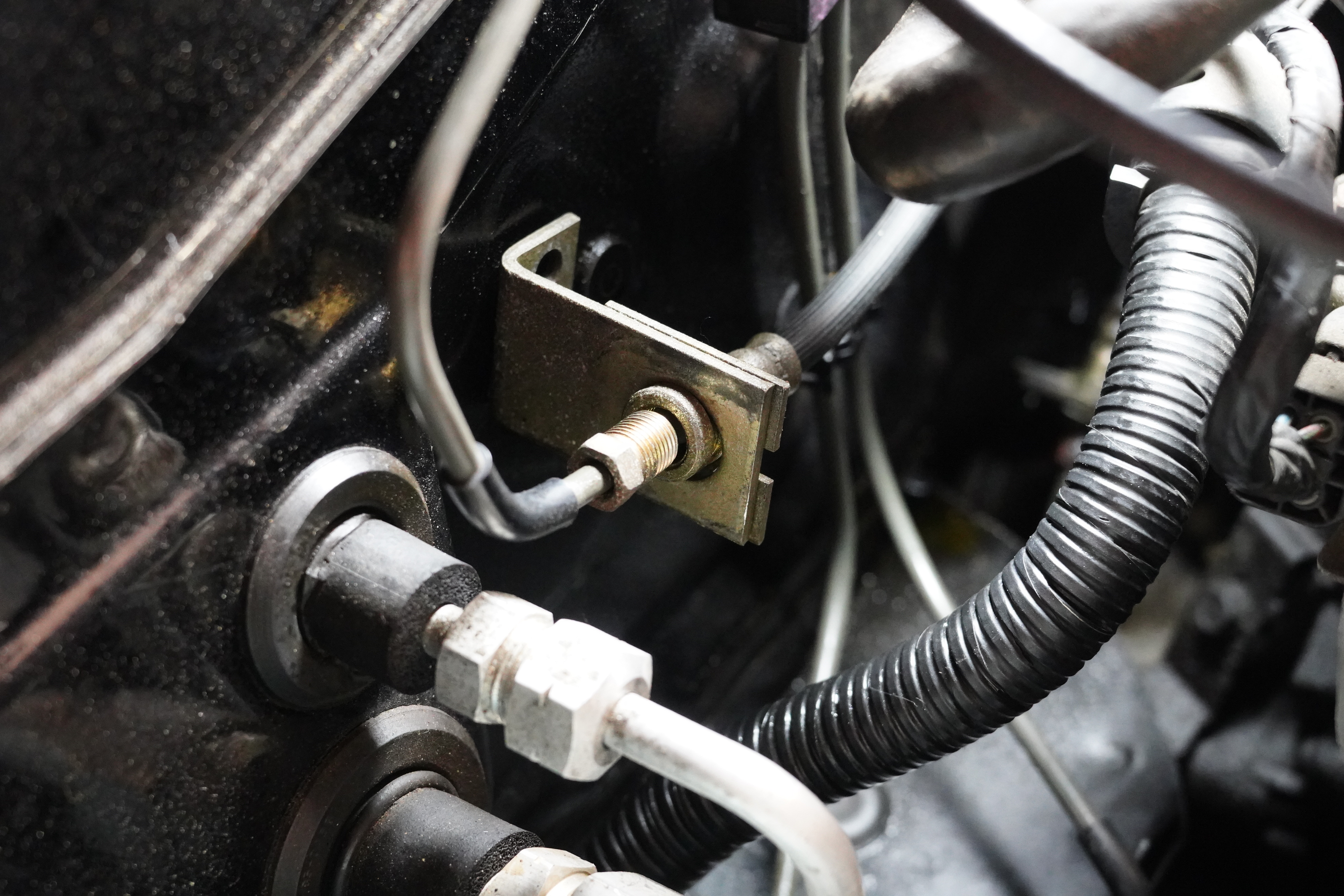 Why am I describing all this? Because these hose connections were a B – I – T – C – H to reach, something completely left unsaid in all the videos I watched. The video voiceovers cheerfully exclaimed “And then we replaced the clutch hose before moving to the secondary cylinder” or similar. I ended up disconnecting two wiring harness brackets to provide myself enough room to get a flare nut wrench on the hose ends. Several bloody knuckles later, it was done.