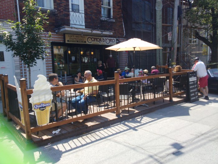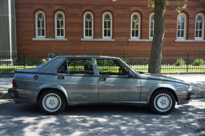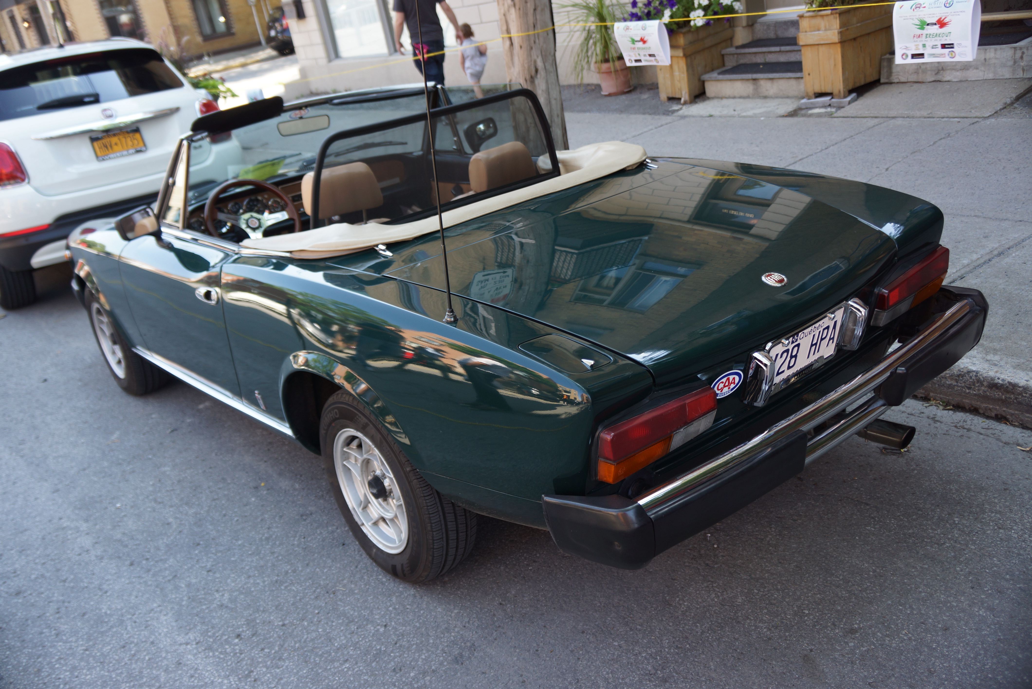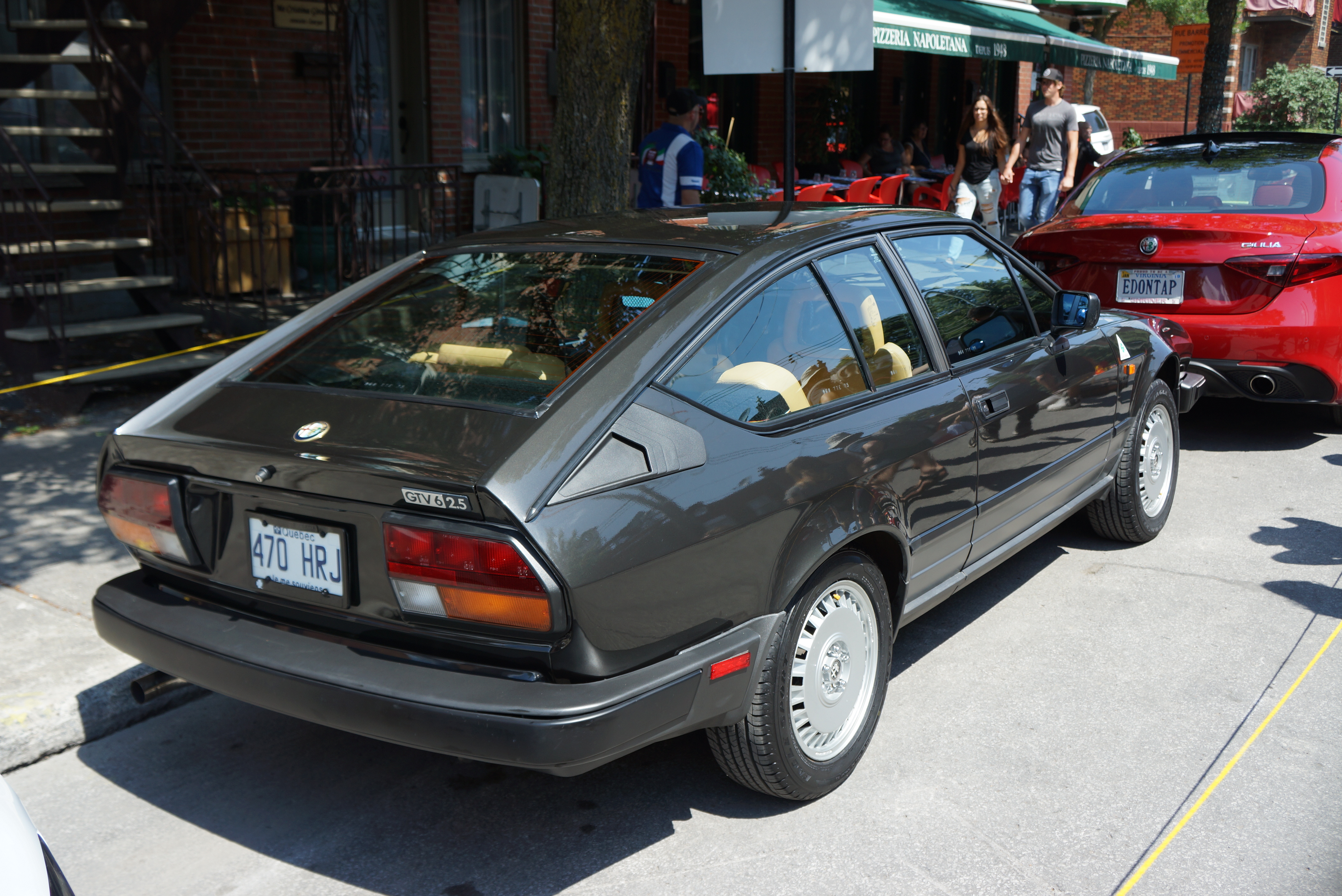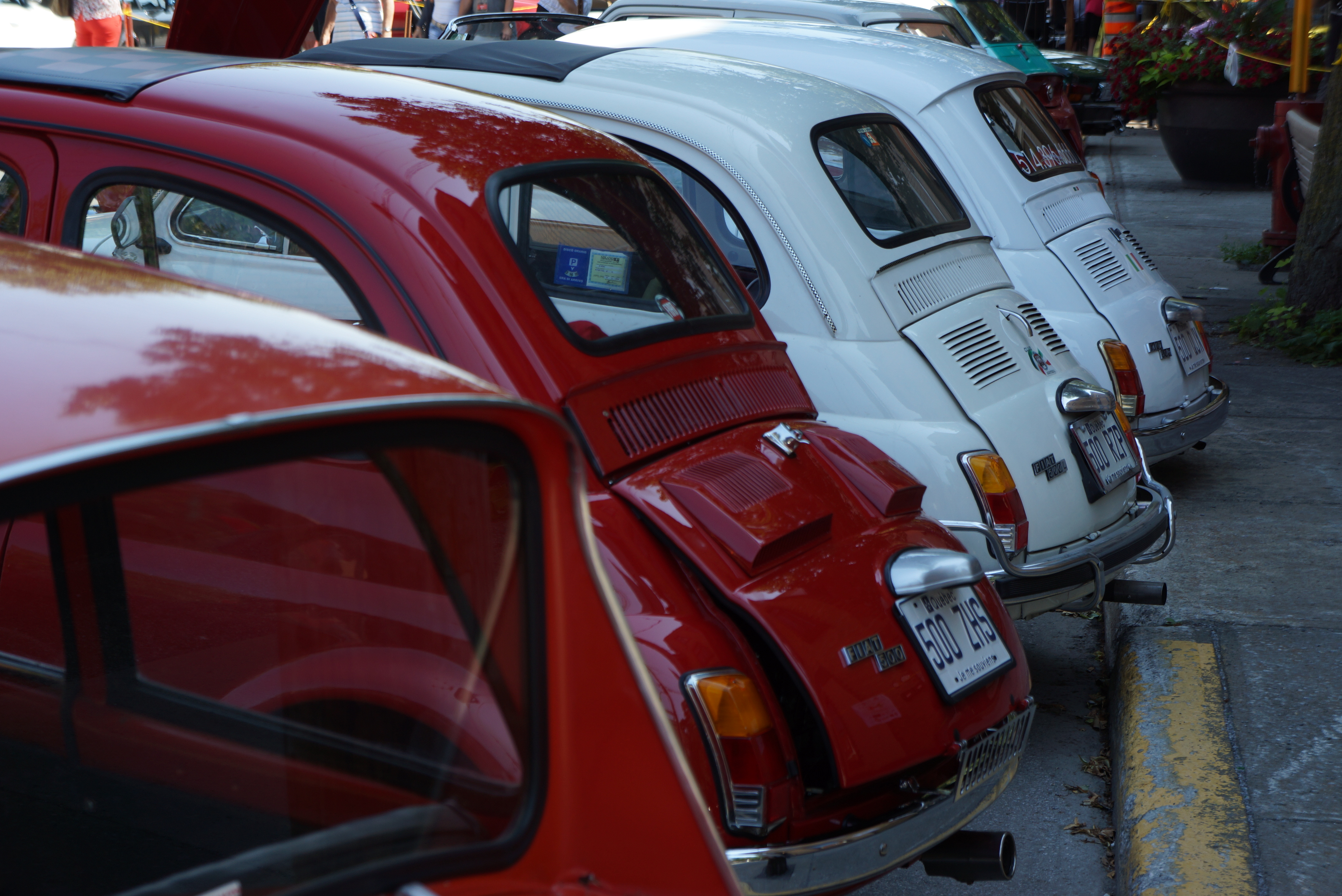 The show was held in conjunction with the Fiat Club of Montreal, and was billed as “Montreal’s Official Italian Automobile Festival”. In addition to the dozens of Alfas, there were Fiats, Lamborghinis, Ferraris, and DeTomasos. All the cars were parked on Rue Dante, a main drag through Little Italy, and the locals came out in force to take in the sights and sounds. The neighborhood featured Italian restaurants, bakeries, and shops, so breakfast and lunch were closer to what you’d find in Rome rather than Paris. Given star billing at the head of the street were eight Alfa Romeo Montreals parked in a row, a sight that I never thought I’d see.