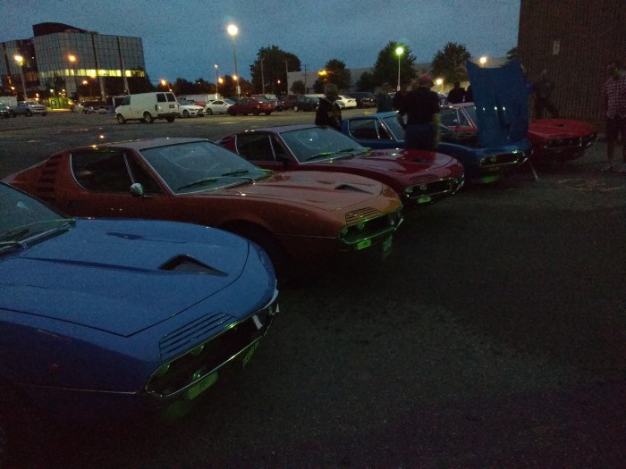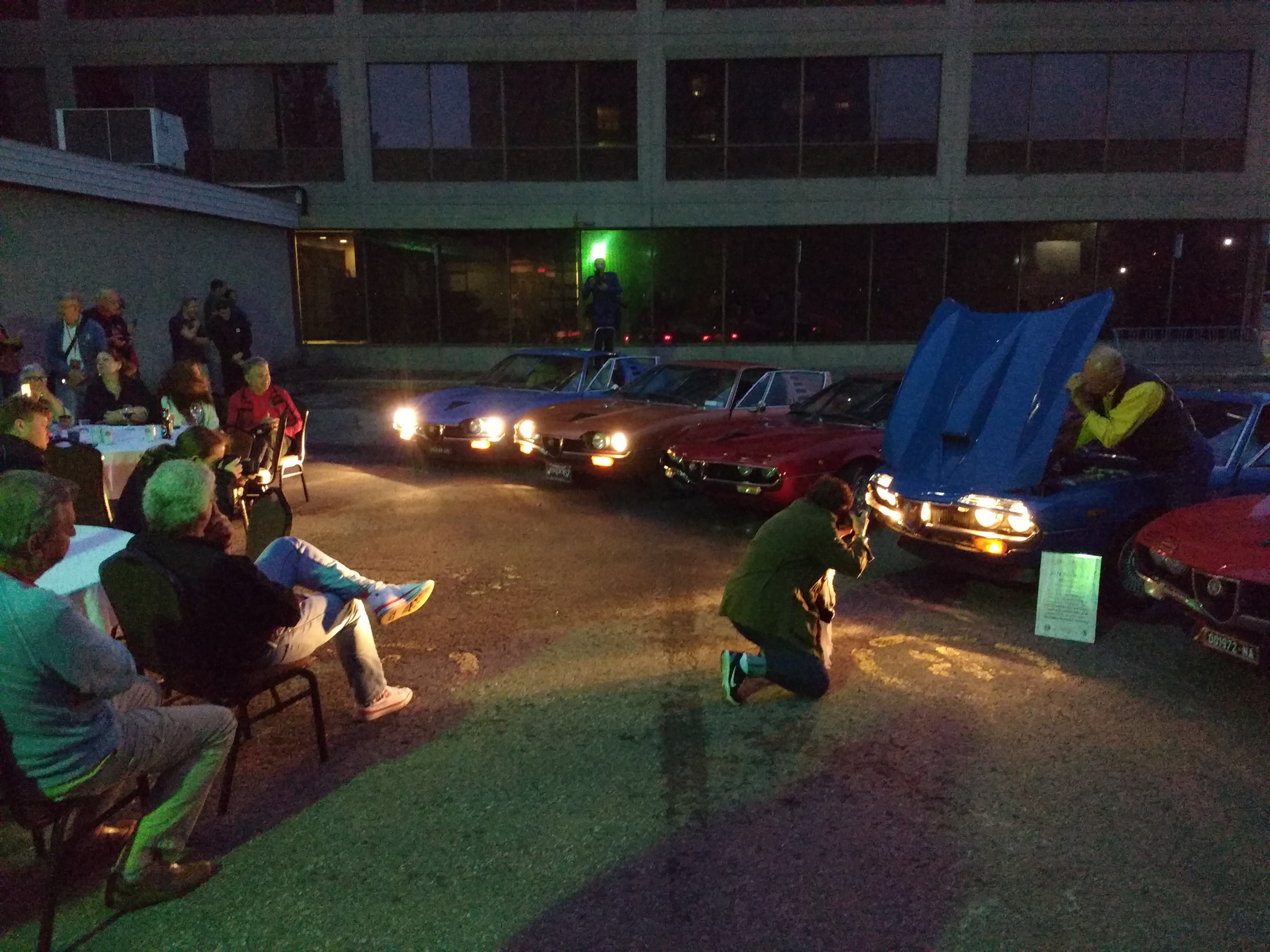 At the conclusion of the meal, about five Montreal owners lined up their cars along the back entrance of the hotel, and Wes Ingram, Spica guru, gave a technical presentation. All the cars had their engines started, and it was an incredible sound to hear these V8 engines roaring.