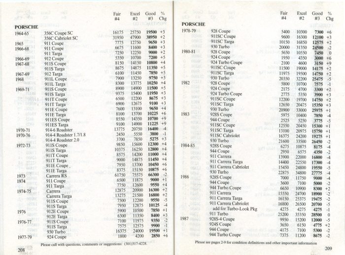 - The two ‘ringers’ are the Porsches. Note that in 2004, the 356 was actually valued higher than the 911S! And in 2004 dollars, the 911 is the lowest-value car here, tied with the Continental.