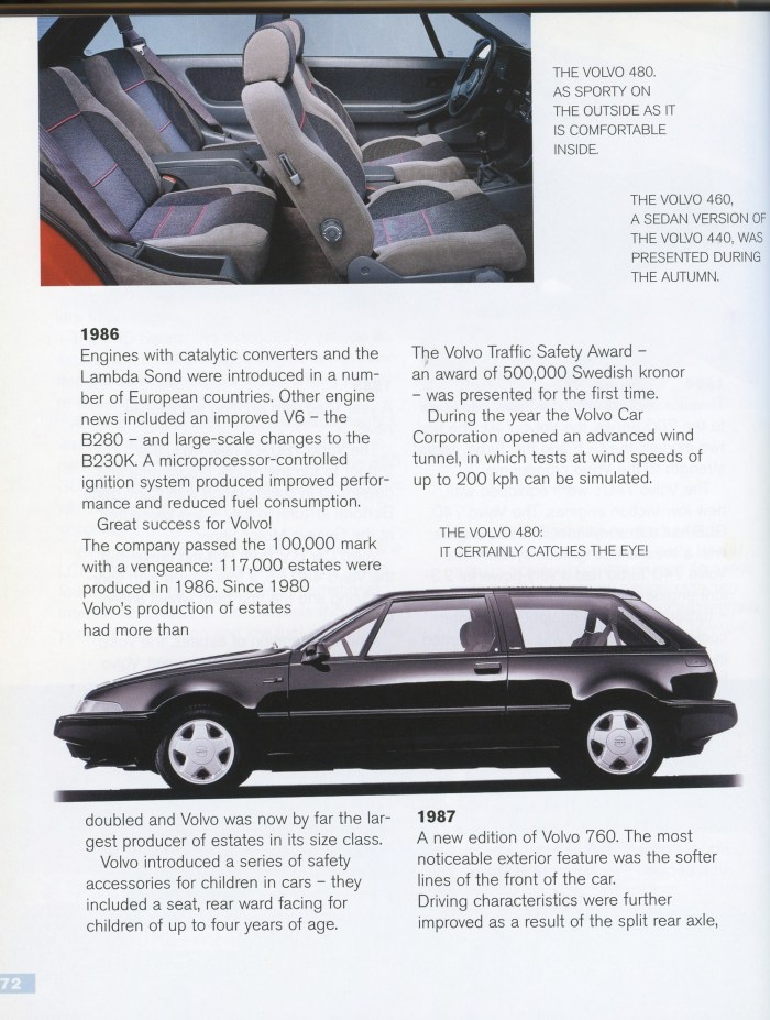 My copy of the book “Volvo The Cars – From the 20s to the 80s”, by Bjorn-Eric Lindh, was published in 1986. Interestingly, there is a two-page spread on the 480 (b&w images below). The book’s text states in part: